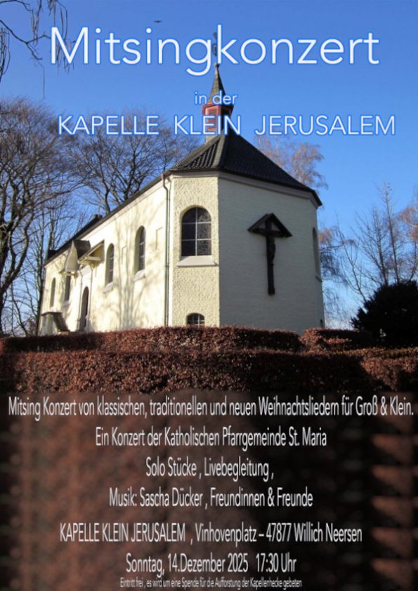 Wir, die Interessengemeinschaft Klein-Jerusalem, kümmern uns seit vielen Jahren um den Erhalt und die Verschönerung der Kapelle Klein-Jerusalem. Dieses Bauwerk ist sowohl für unsere Geschichte als auch für die Architektur und religiöse Tradition einzigartig.